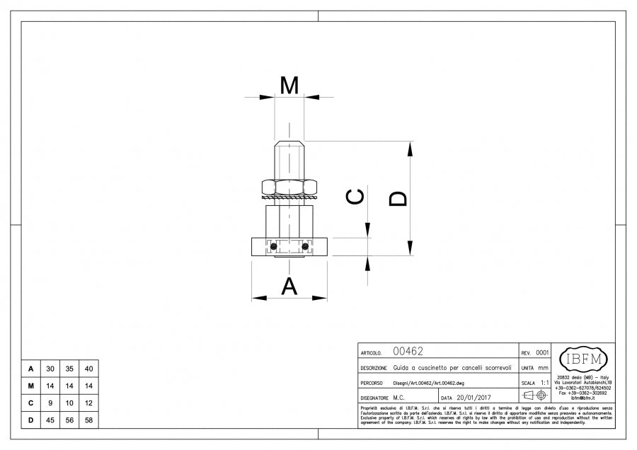 IBFM Guida con cuscinetto a sfere per cancello scorrevole diametro 30 mm.