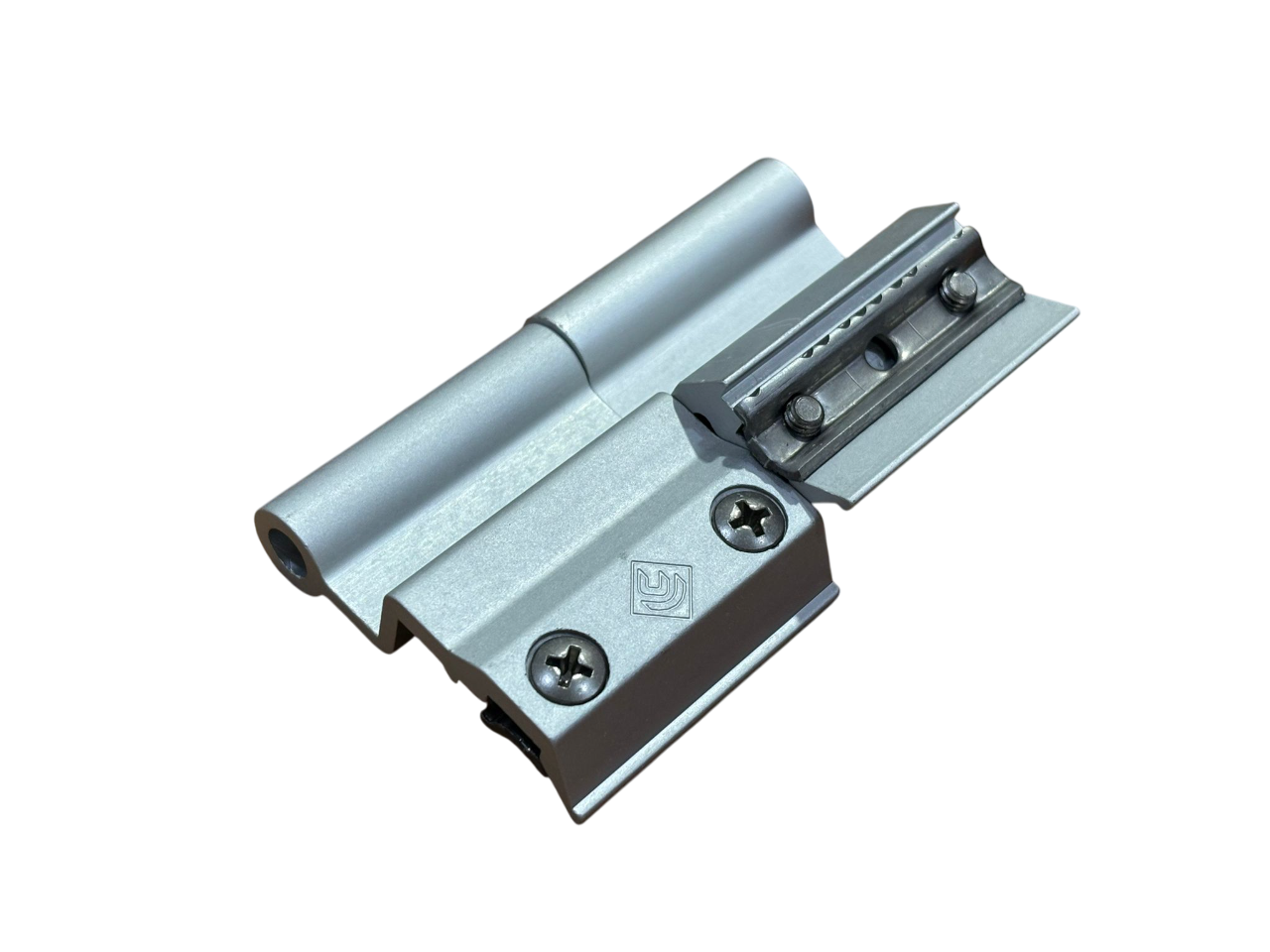 DESCRIZIONE: Cerniera in alluminio estruso, boccole in nylon, perno e viti di serraggio M5 TSC CR in acciaio inox. Cerniera a montaggio rapido