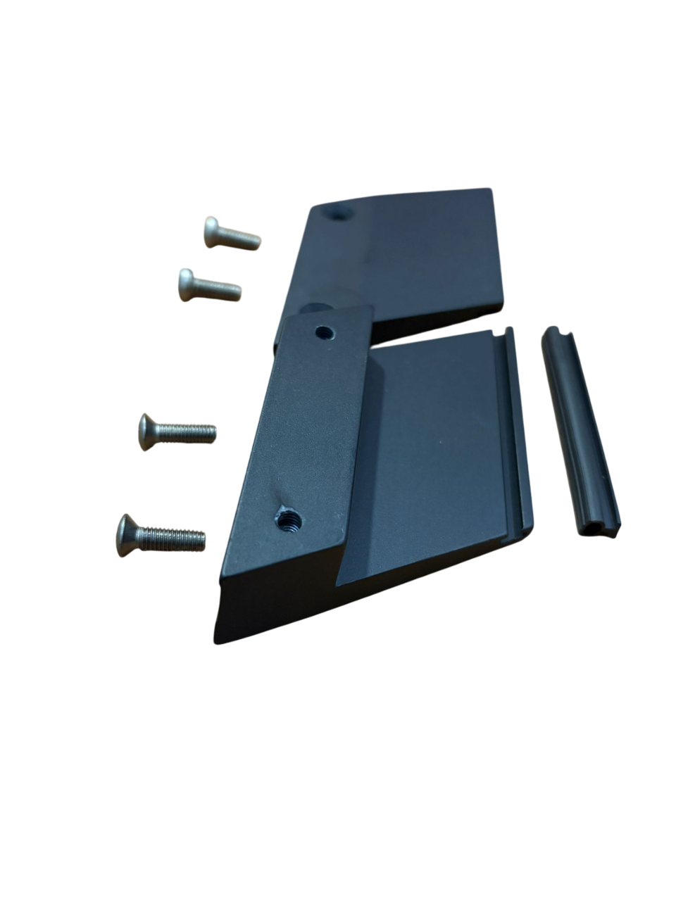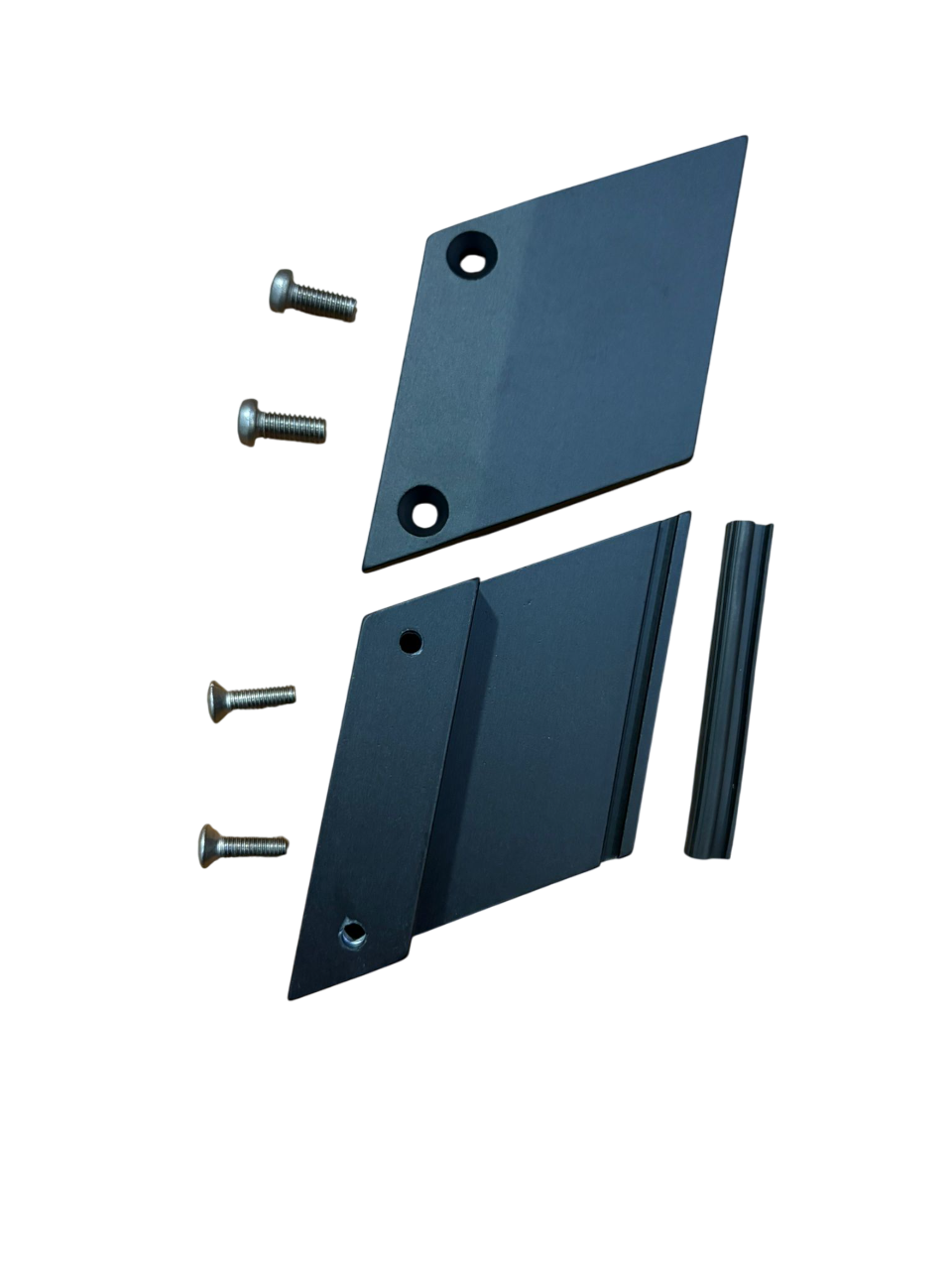 2 viti T.C. M6x14 e n. 2 viti T.S.C. M5x16 in acciaio inox. Guarnizione in giprene nero per spessore vetro mm 8 + 8,76.