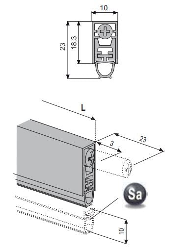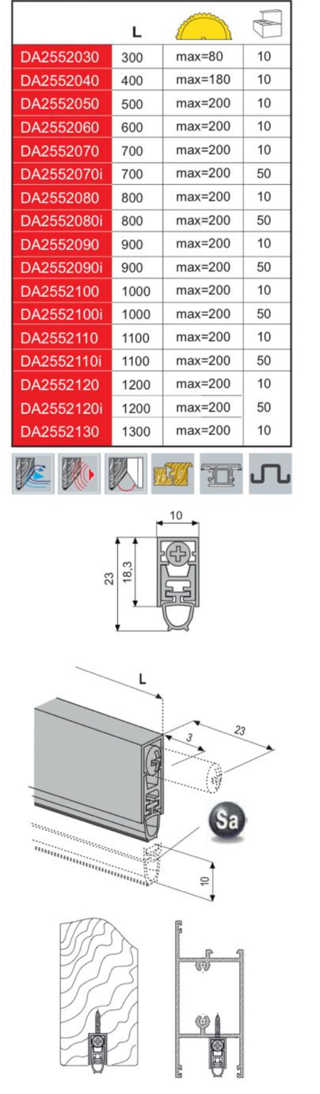 | DA2552030 | 300 mm. | Rasabile per applicazione su porte con larghezza fino a 220 mm. |