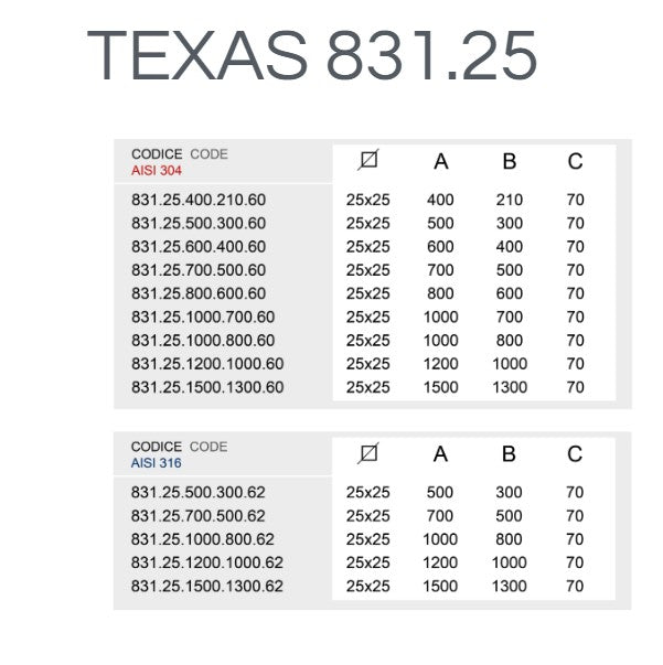 FIMET Maniglione quadrato per porte modello TEXAS. Acciao Inox. Kit di fissaggio a coppia incluso. Kit di fissaggio montaggio singolo per legno incluso.