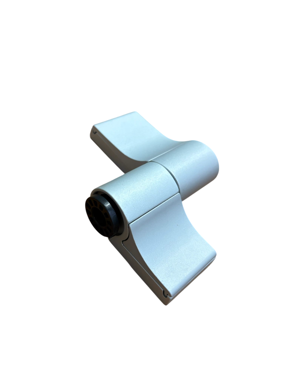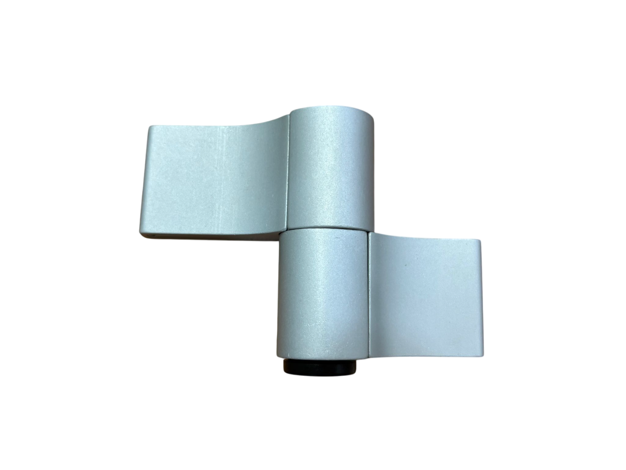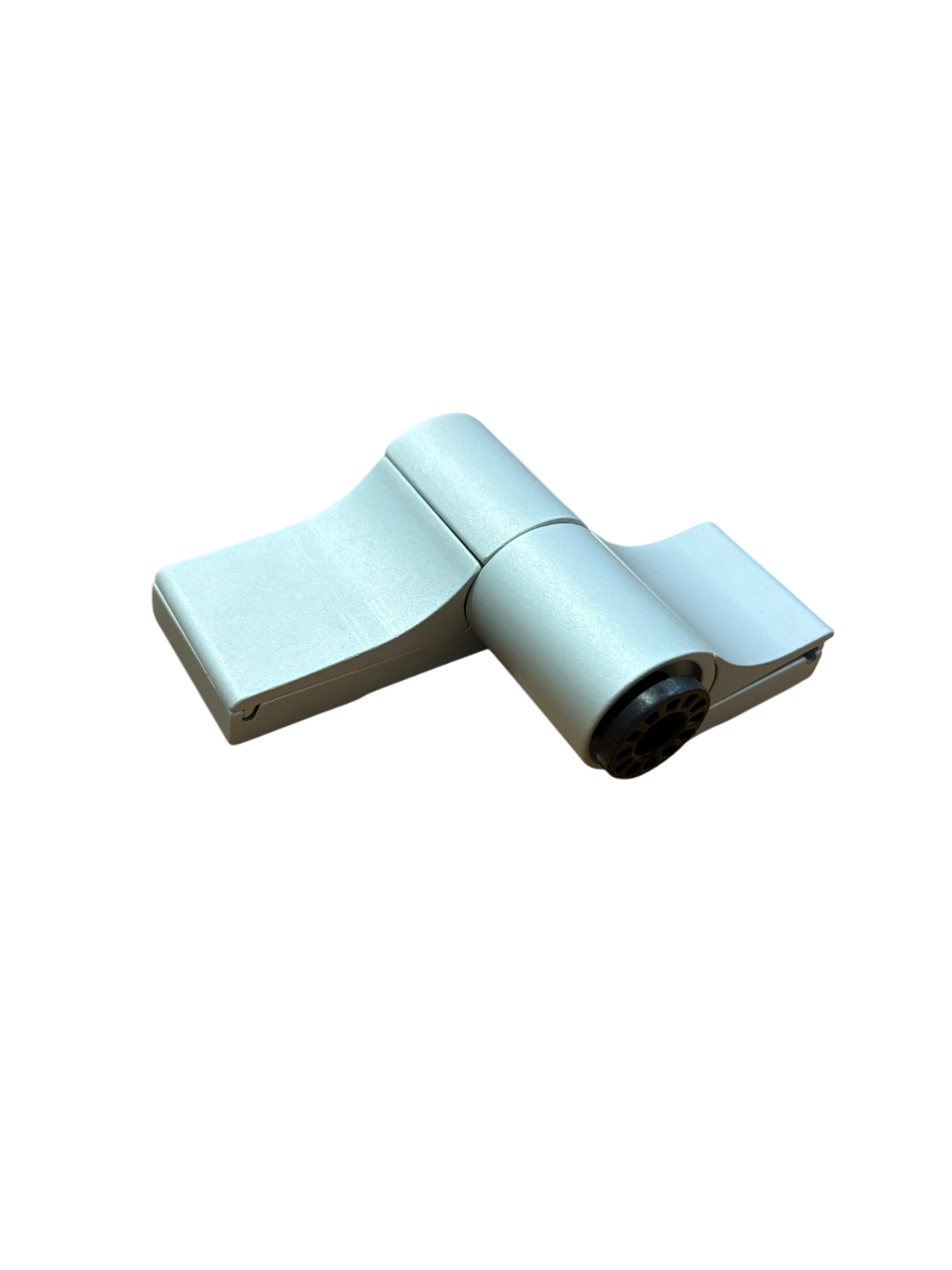 DESCRIZIONE: Cerniera registrabile a 2 ali in alluminio, interasse 93 mm, centro di rotazione 20 mm, gradino 0 mm, 1 perno Ø 11 mm in acciaio inox, premontato su boccola a camma in zama zincata nera, 2 carter di copertura in alluminio, 2 tappi in nylon, 1 boccola autolubrificante in nylon e 1 grano di regolazione in zama. Portata: 2 cerniere 100 Kg, 3 cerniere 120 Kg