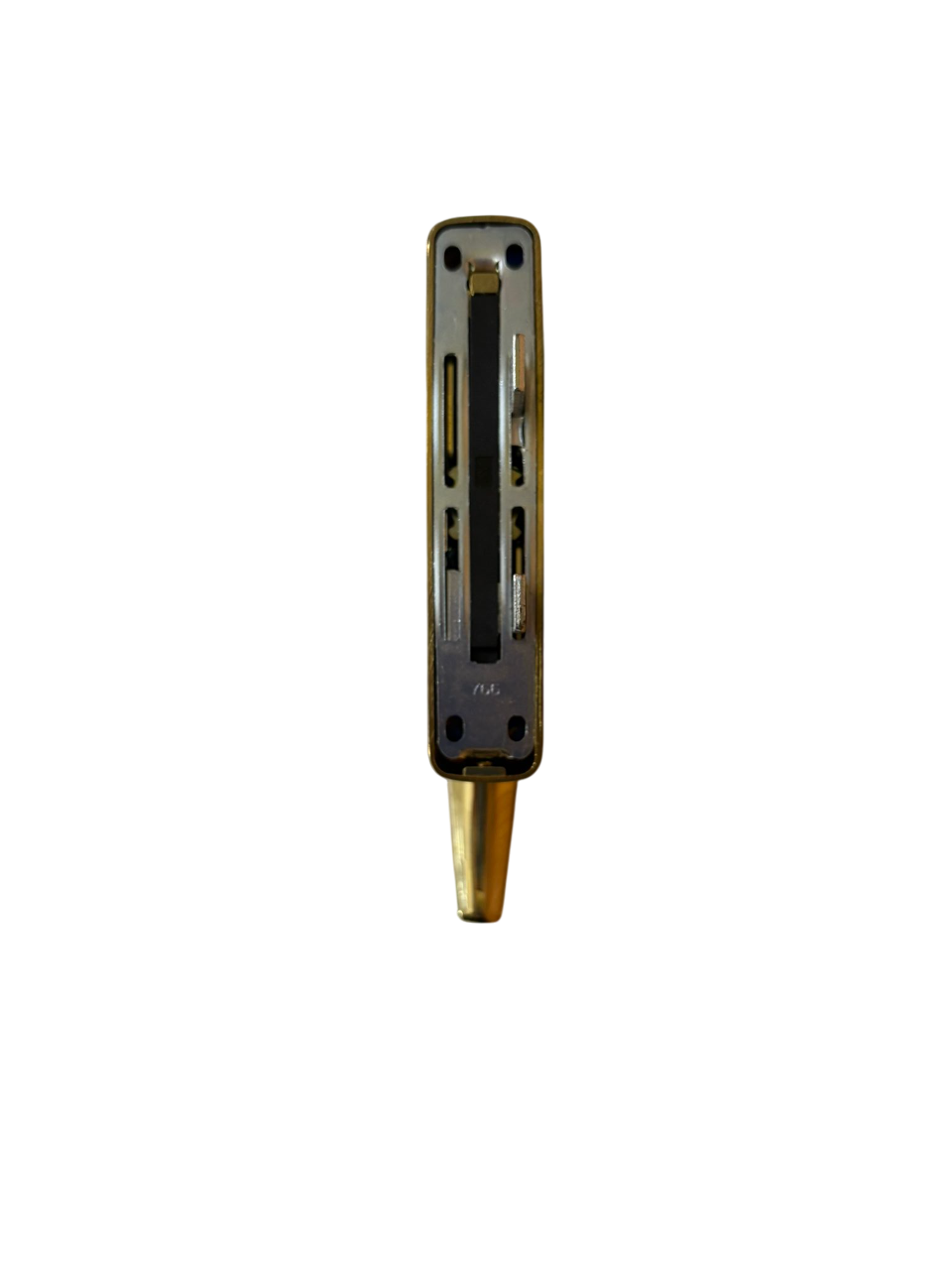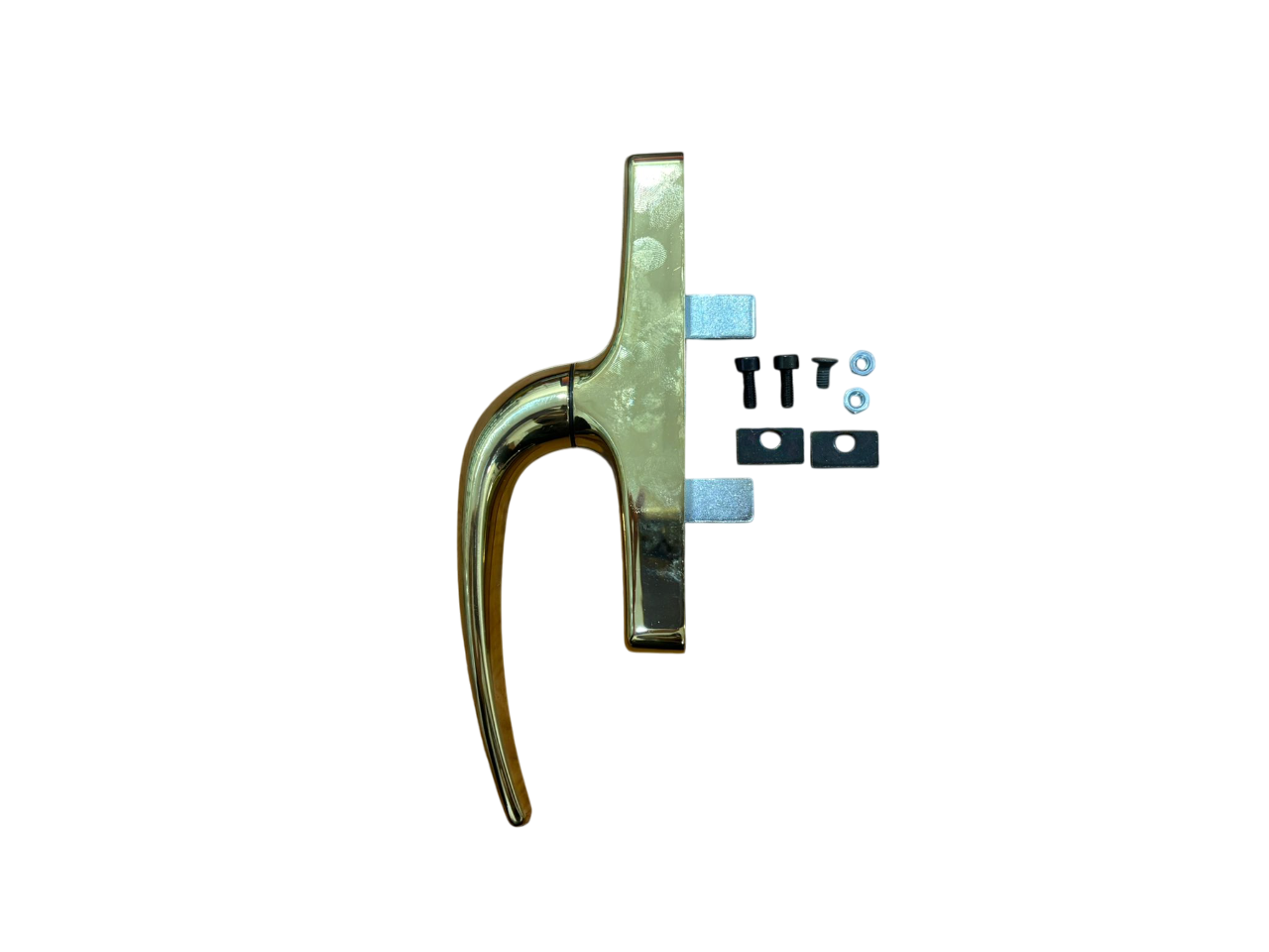 DESCRIZIONE: Cremonese in metallo pressofuso per persiane, per aperture esterne ed interne, interassi 104-108, 2 piastrine sottovite, 2 viti TCEI M4x10 e 2 dadi M4 in acciaio zincato