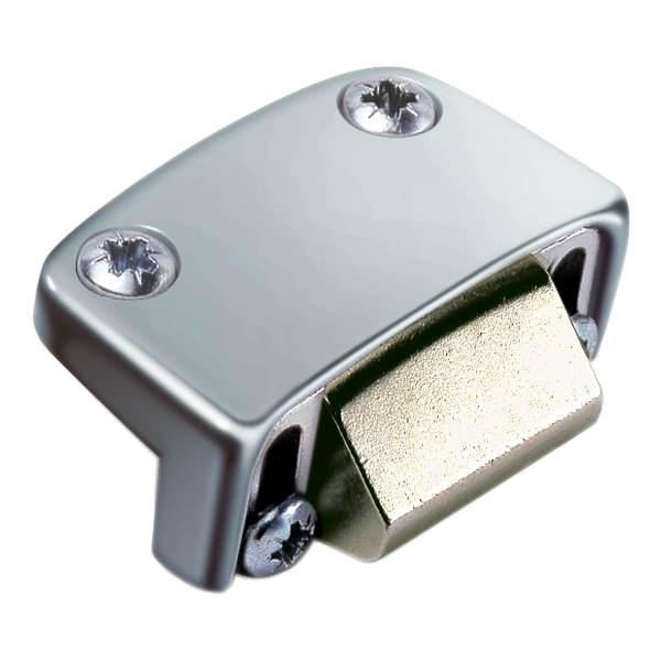 Incontro sormonto per maniglione antipanico porte PVC e legno serie Panama in zama, per serrature centrali e scrocchi alto-basso, con regolazione orizzontale e di pressione senza ausilio di spessori aggiuntivi ed applicabile su porte monoanta oppure porte a due ante come incontro superiore.