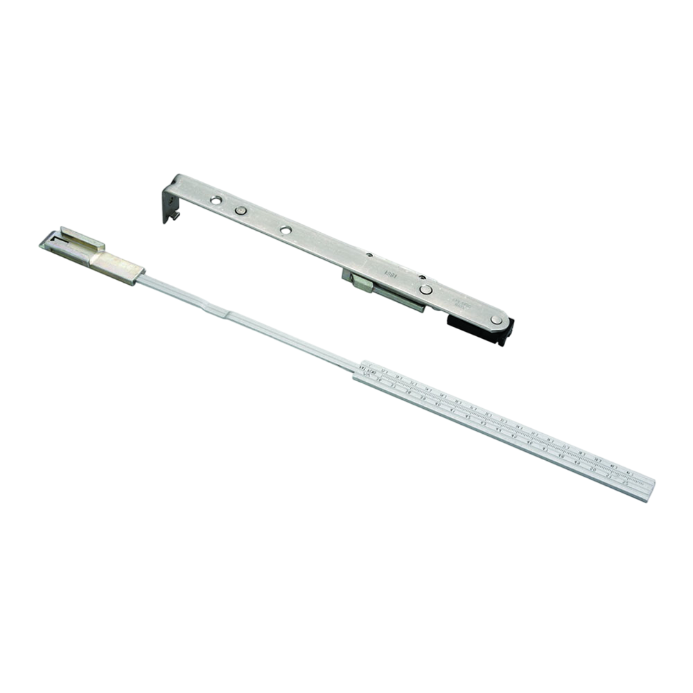 Braccio corto destro per manovra tradizionale, in zama zincata bianca, nylon nero, acciaio inox 201 e 304, viteria in acciaio inox 304 premontata, asta millimetrata in alluminio pre-ossidato.
